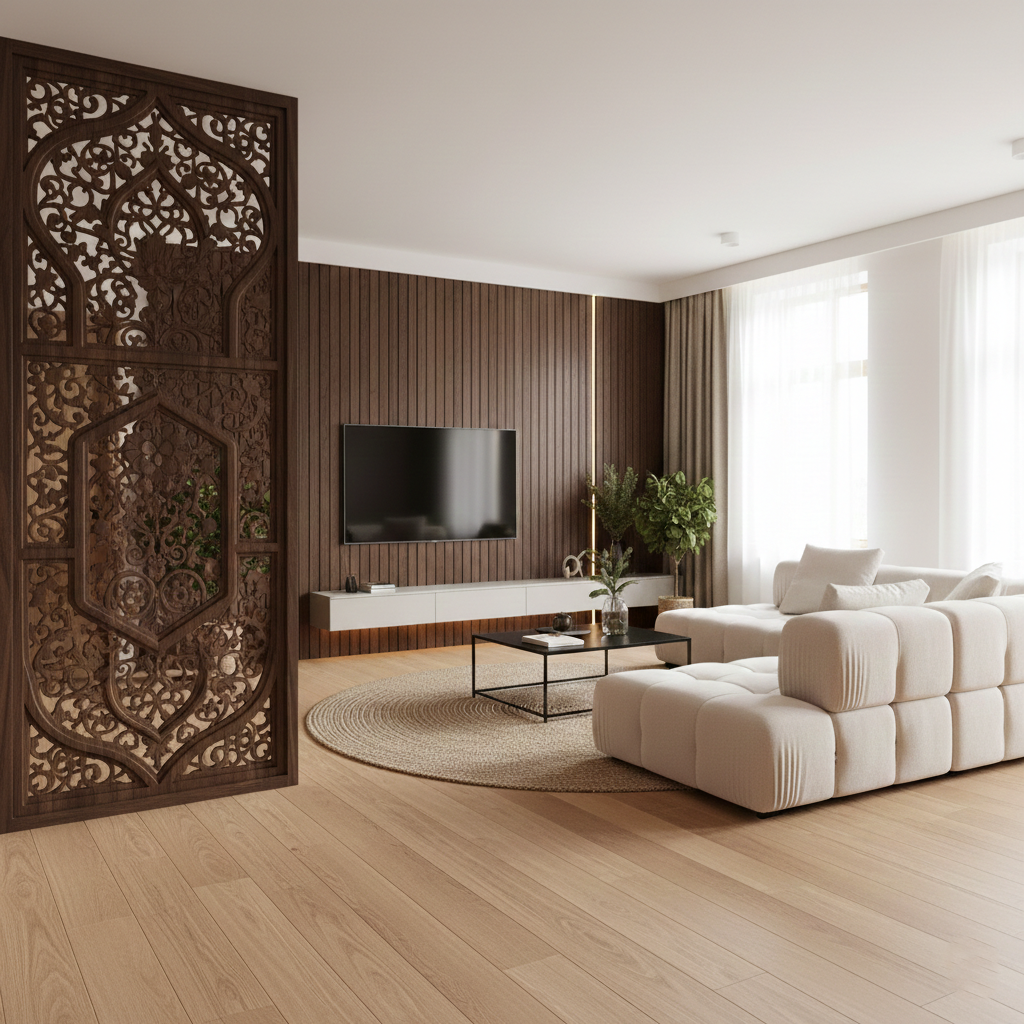 Wooden Slat Room Divider – Create a stylish separation between entryway and living space.